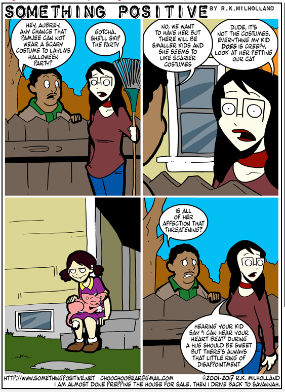 Something Positive may not be the first webcomic out there, but it was the first I encountered way back in early 2002. It was my gateway drug into webcomics as they exploded onto the internet scene in the early aughts, and at their heyday was my preferred method of wasting time at work. The first 30 minutes of my workday was always devoted to catching up on my comics, and, just off the top of my head, I went through: Something Positive, PVP, Queen of Wands, Penny Arcade, Errant Story, Girly, Megatokyo, Applegeeks, Two Lumps, Wapsi Square… and several others I can’t remember the names to anymore.